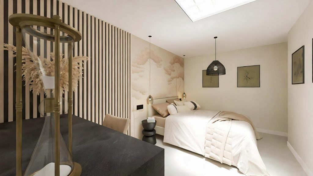 - Apartamento de 64 m2 distribuido en salón con cocina americana, baño y dormitorio.