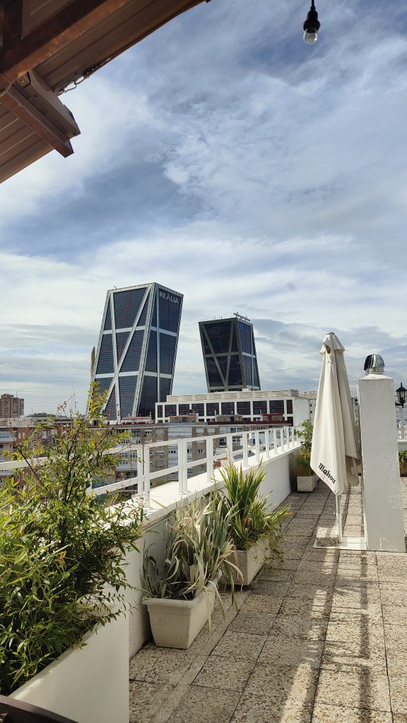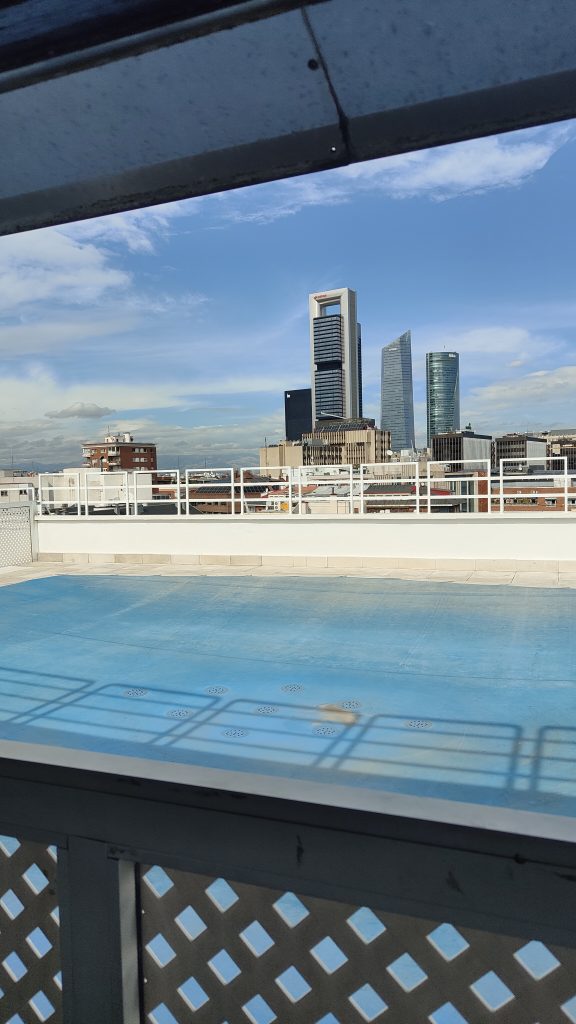 - Piscina y chiringuito en azotea que le da un distintivo a esta vivienda en la zona de Chamartín, con las vistas espectaculares a las torres Kio y el Skyline de Madrid